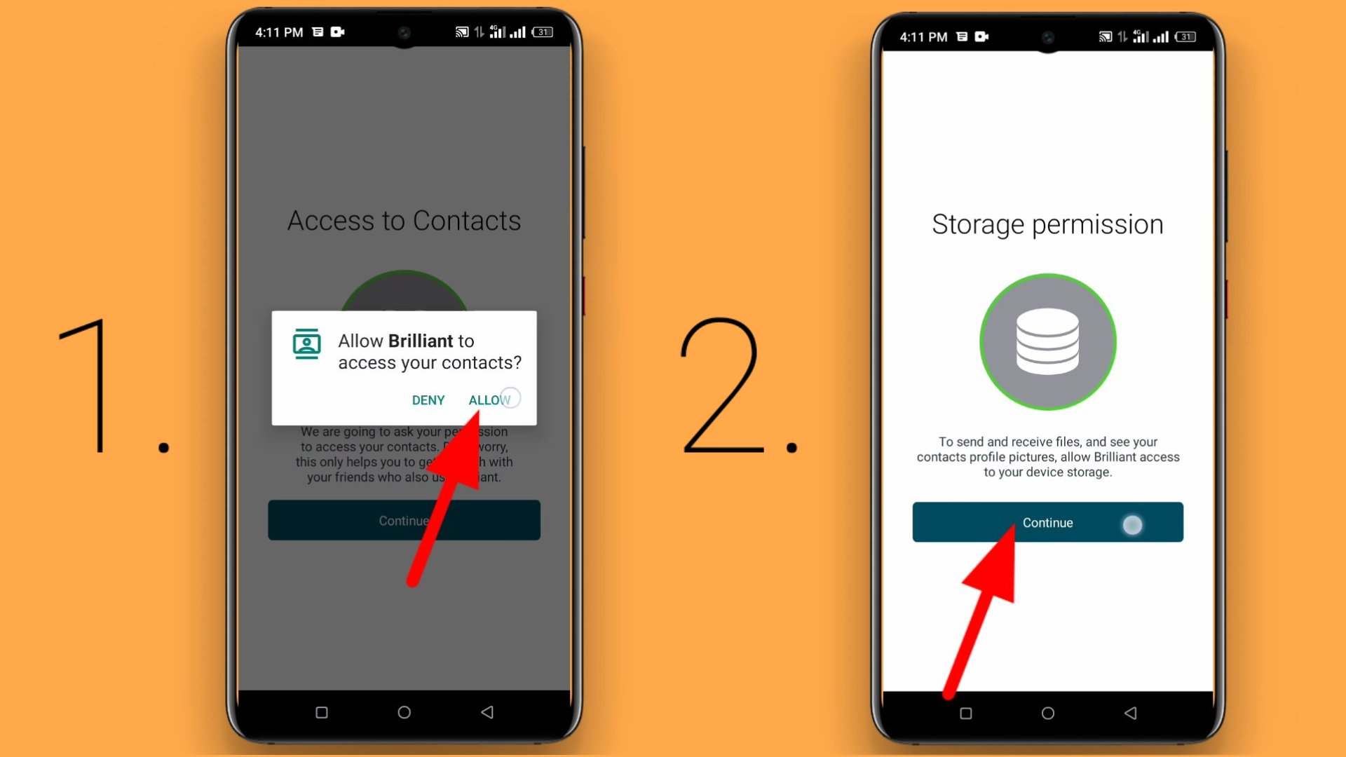 ২. এইবার অ্যাপটির দ্বিতীয় ধাপে এসে আপনাকে একটি মোবাইল নাম্বার দিতে হবে। যে নাম্বারটি দিয়ে আপনি ব্রিলিয়ান্ট একাউন্ট রেজিস্ট্রেশন করবেন। এখানে নাম্বারটি দেবার পর পরবর্তীতে আপনাকে একটি নতুন ব্রিলিয়ান্ট নাম্বার দেওয়া হবে। যে নাম্বারটির মাধ্যমে আপনি পরিচয় গোপন করার মতো করে কাউকে ফোন দিতে পারবেন। যাইহোক, আপনি এখানে একটি সচল নাম্বার বসিয়ে দিবেন।