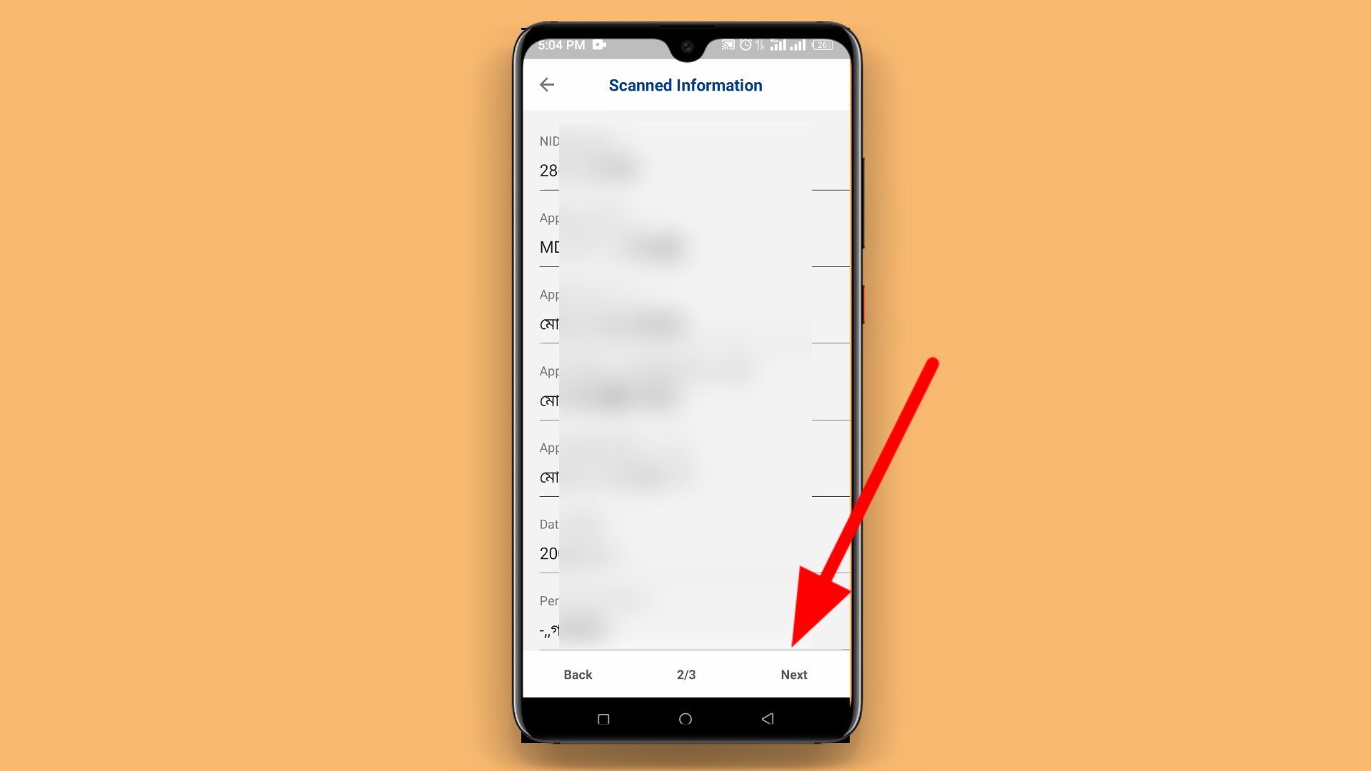 ৫. তারপরের ধাপে আপনার দেওয়া তথ্য গুলোর উপর ভিত্তি করে একটি আউটপুট দেখাবে। যেখানে এনআইডি কার্ডের তথ্য অনুযায়ী আপনার নাম, ঠিকানা ইত্যাদি সম্পূর্ণ বর্ণনা দেওয়া থাকবে। এখানে যদি এসব তথ্যের মধ্যে কোন ভুল থাকে তবে আপনি সেটি মেনুয়ালি লিখে দিতে পারবেন। যদিও এসব তথ্যের মধ্যে কোন ভুল থাকে না। এসব তথ্য যাচাই করা শেষ হলে আপনি নিচের 'Next' লেখাতে ক্লিক করবেন।