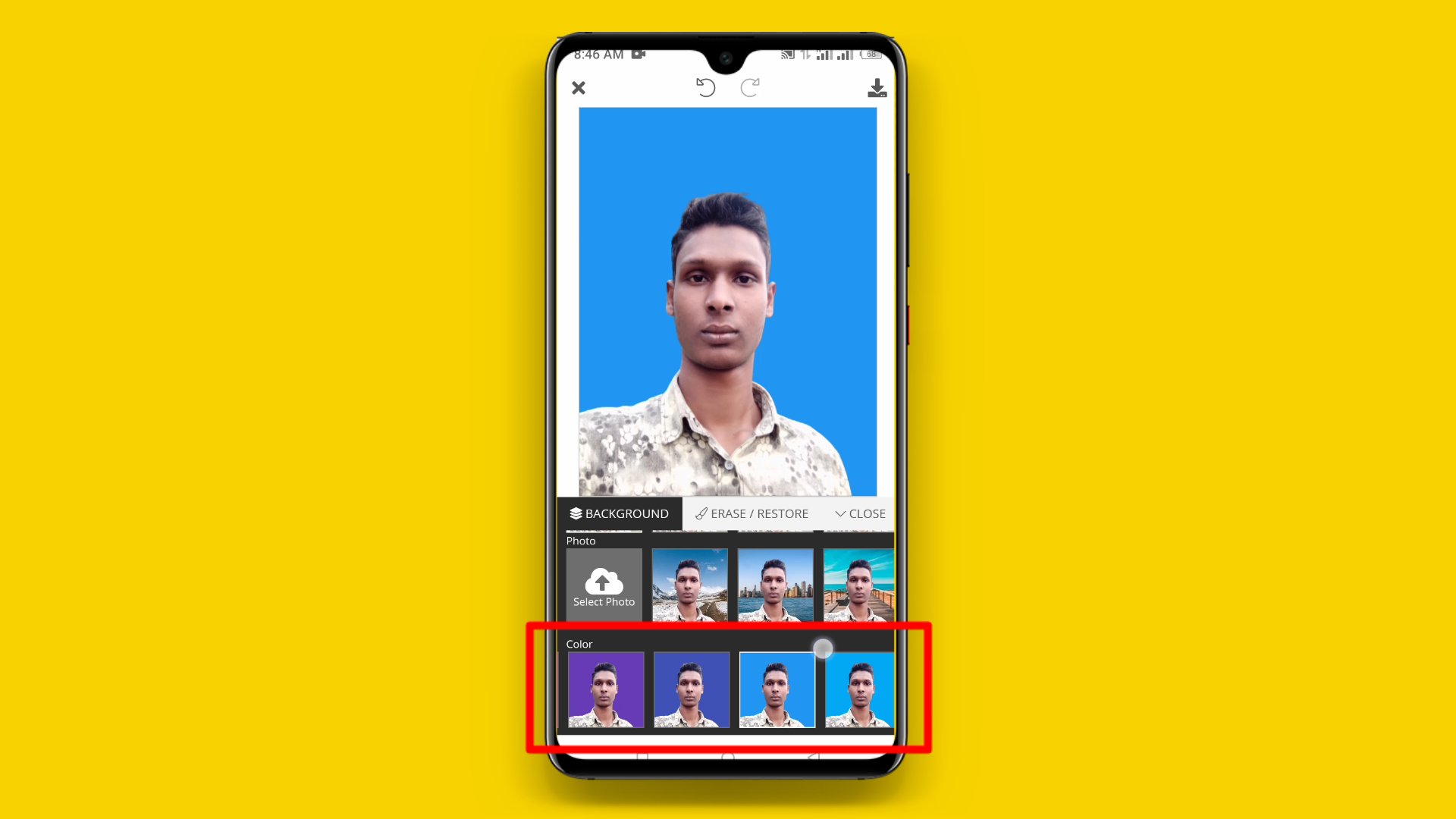 ১৩. এছাড়া এখানকার নিচের color আইকনে ক্লিক করে ছবিটির ব্যাকগ্রাউন্ডকে পারফেক্ট ভাবে রঙ্গিন করতে পারবেন।