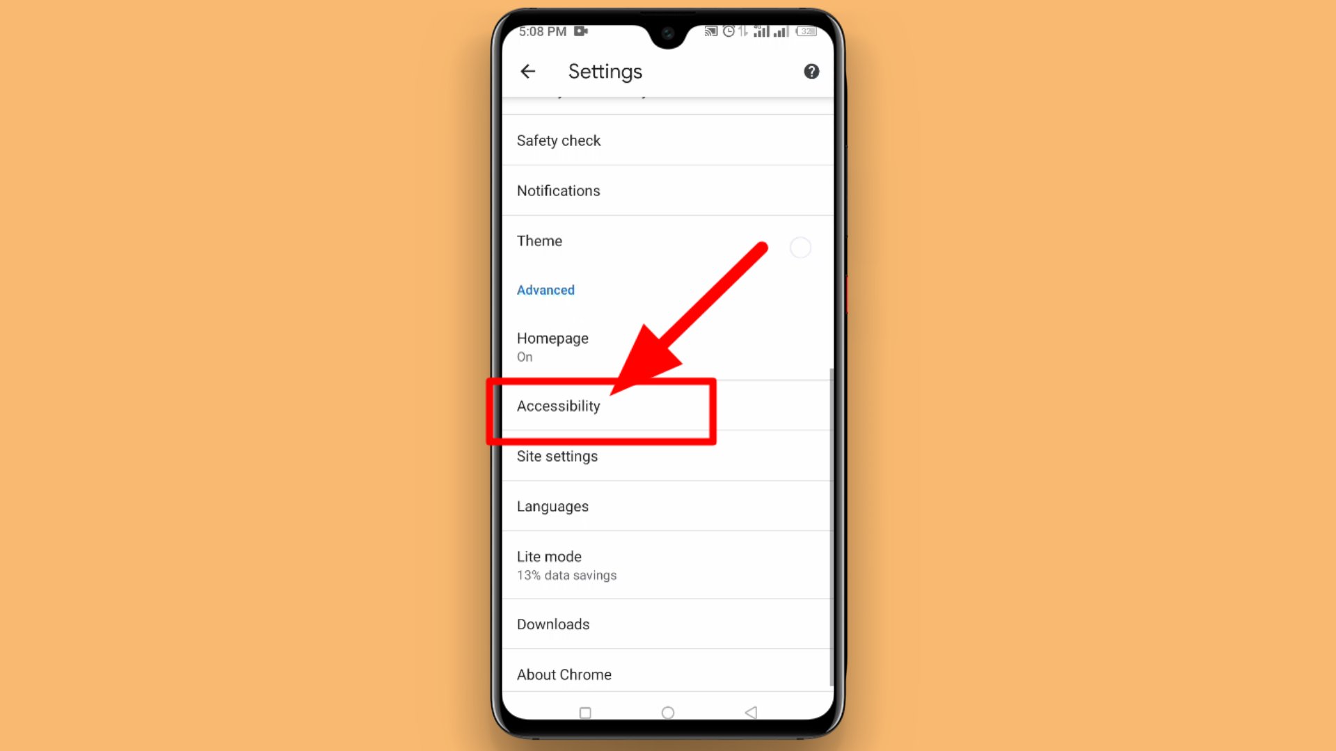 ৩. এরপরের পেজে আপনি একটু নিচে চলে আসলে পেয়ে যাবেন Accessibility নামের একটি অপশন; এবার আপনি এখানটাতে ক্লিক করবেন।