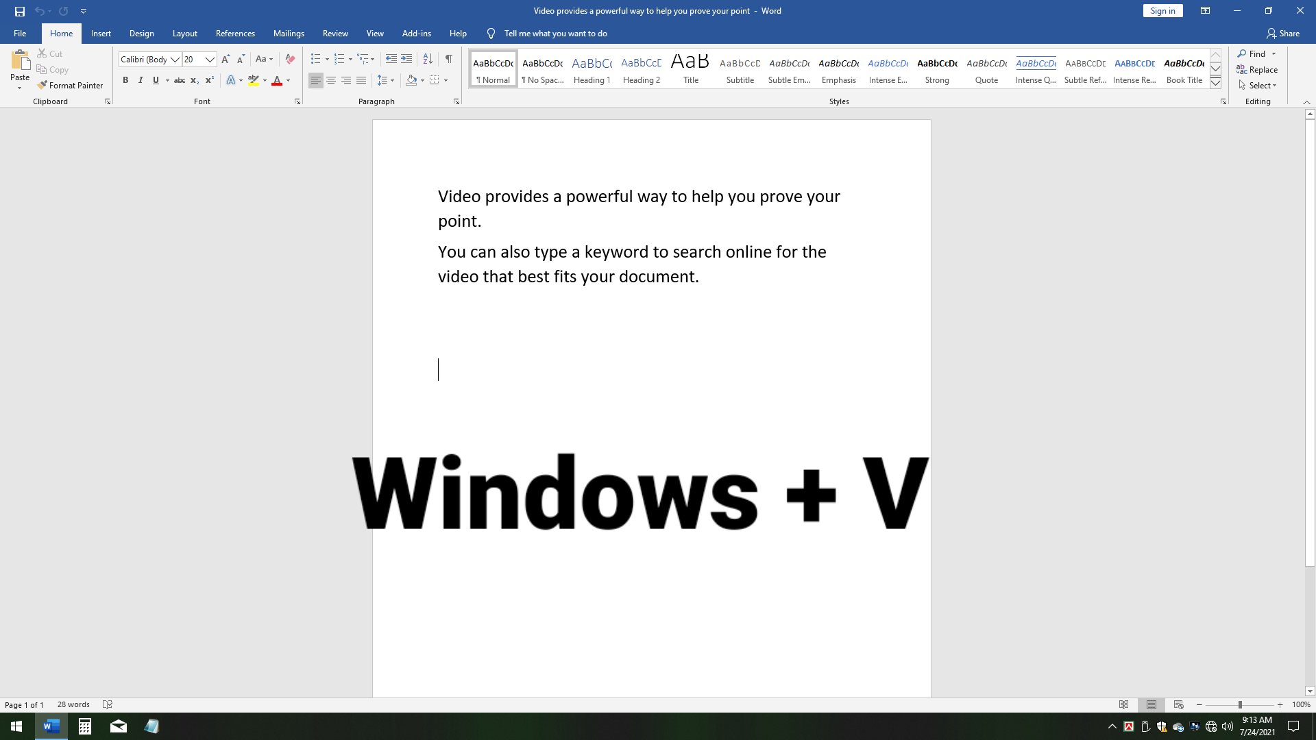 ১. এ জন্য এটি চালু করার জন্য আপনি মাইক্রোসফট অফিস ওয়ার্ড অথবা যেকোন নোটপ্যাড এ গিয়ে কিবোর্ডের Windows+V প্রেস করবেন।