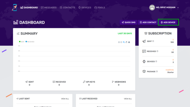 ৩য় ধাপ: এবার ড্যাসবোর্ড থেকে এড ডিভাইস বাটনে ক্লিক করুন
