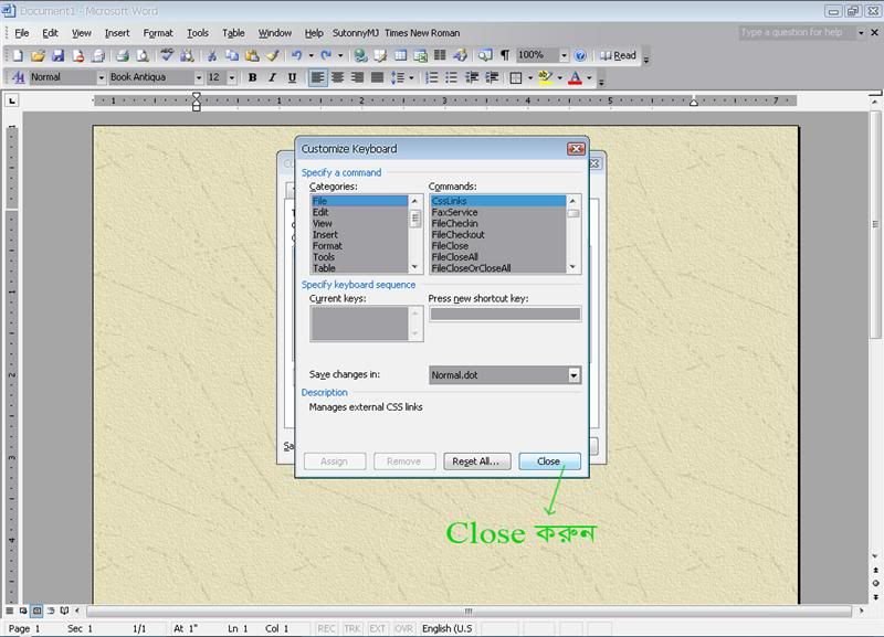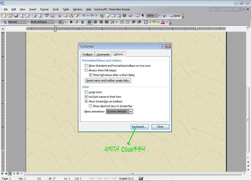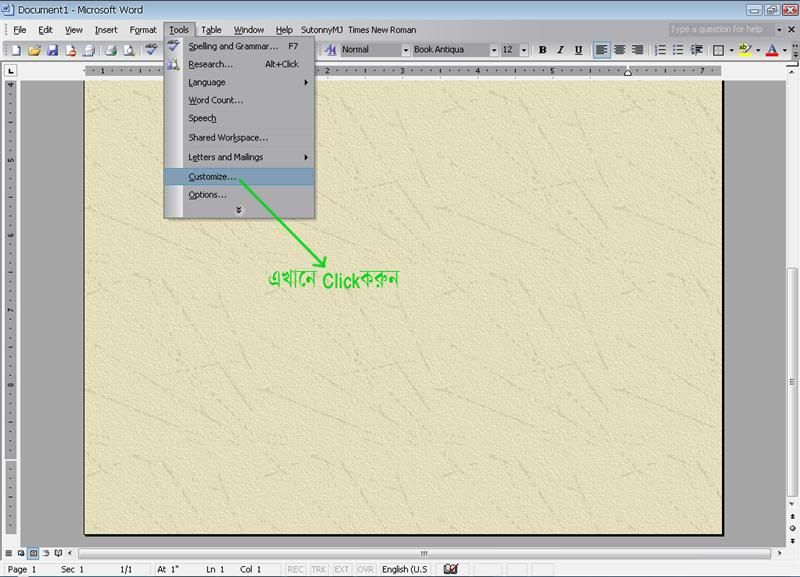 এ সময় বাংলা ও ইংরেজী ফন্ট বারবার পরিবর্তন করতে হয় অনেক ঝামেলা হয়। বিশেষে করে মেনু বার থেকে বার বার খুজে বের করতে হয় । তাছাড়া বারবার ফন্ট পরিবর্তন করতে অনেক সময় নষ্ট হয়। আপনি ইচ্ছা করলে আপনার মূল্যবান সময় বেশি নষ্ট না করে কিবোর্ডের মাধ্যমে ফন্ট চেঞ্জ করতে পারেন। এ জন্য আপনি মেনু বার থেকে Tools>Customize এ যান
