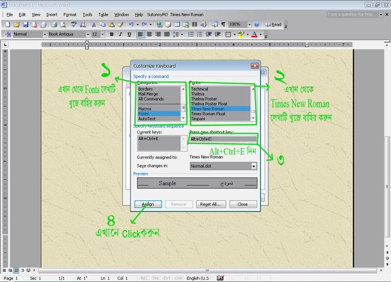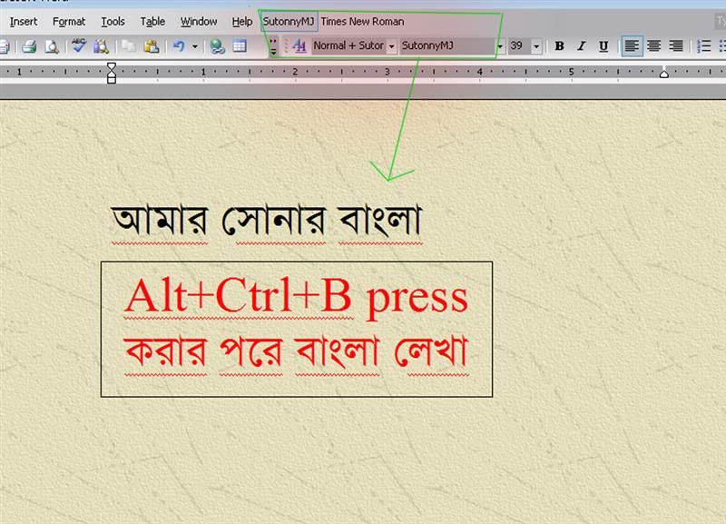 *এবং উপরের চিত্র অনুযায়ী কাজ করার পরে আপনাকে বাংলার সাথে সাথে ইংরেজী লিখতে চাইলে Alt+Ctrl+B চেপে বিজয় Disable করে Alt+Ctrl+E চেপে times new roman ফন্ট টি সিলেক্ট করতে হবে। এবং সেই সাথে ইংরেজী লেখার জন্য প্রস্তুত হয়ে যাব।