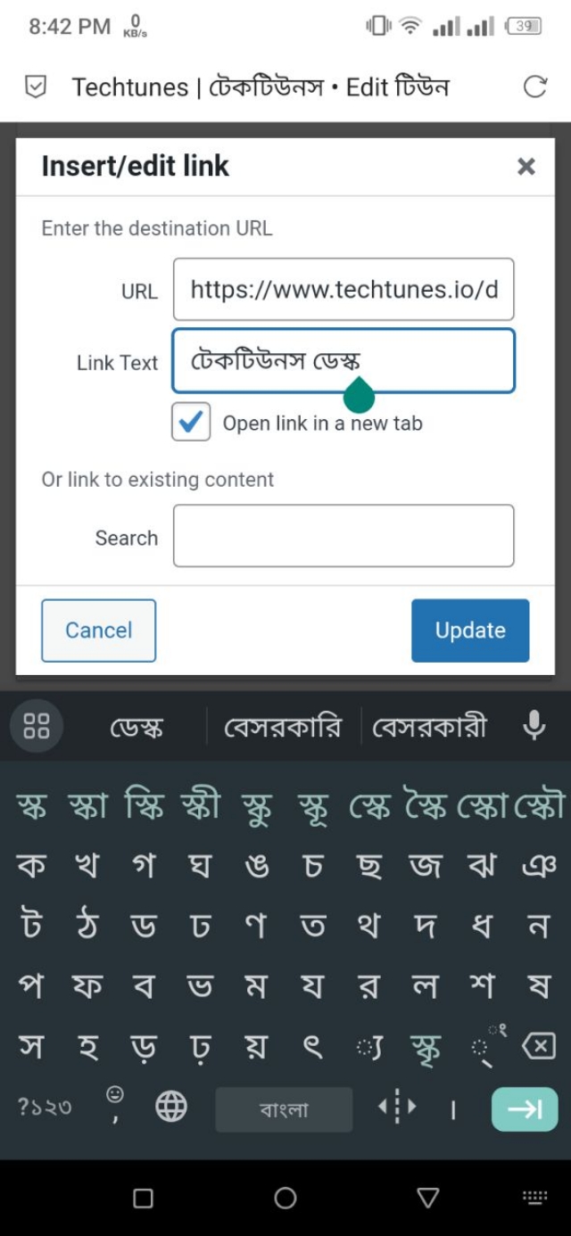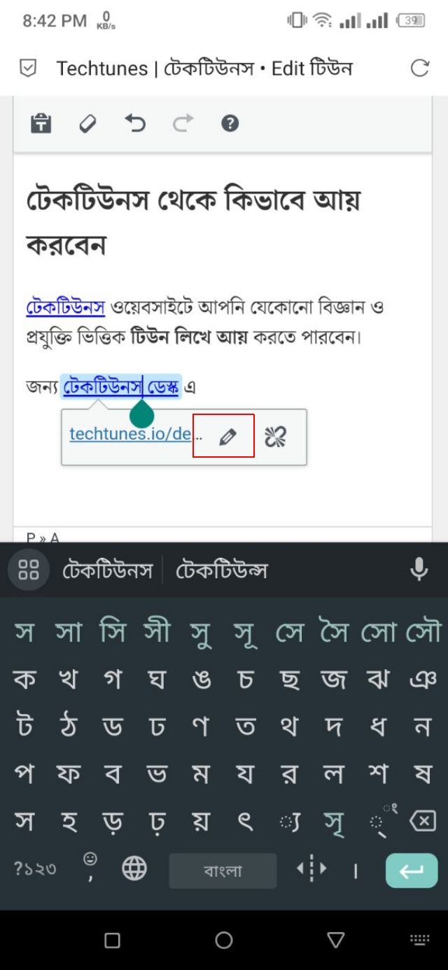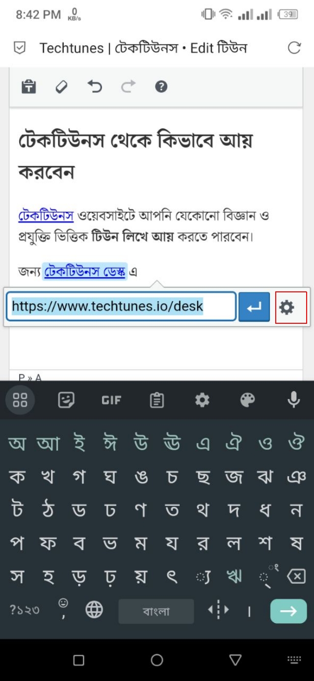 ১. উদাহরণস্বরূপ, যদি এখানে থাকা টেকটিউনস লেখাটিকে Techtunes ওয়েবসাইটের সাথে হাইপারলিংক করতে চাই।