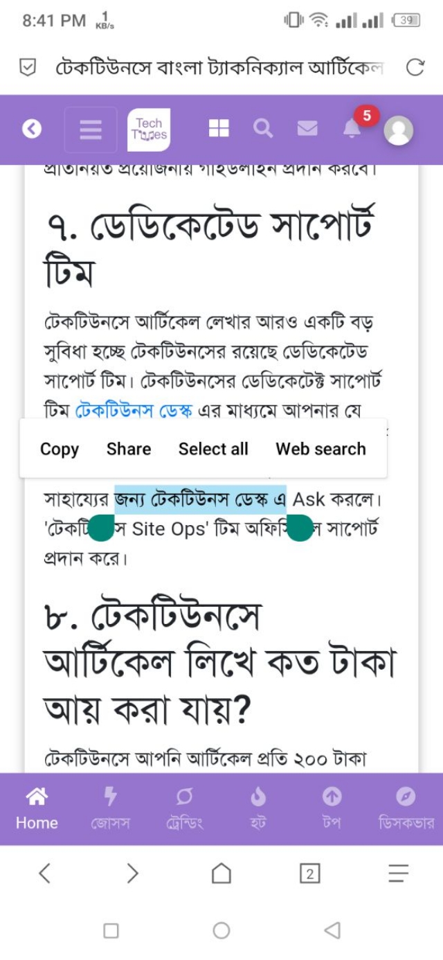 ২. এইচটিএমএল কোড ব্যবহার না করে কোন একটি লেখাকে হাইপারলিংক করার জন্য টেকটিউনস ওয়েবসাইট থেকে যেকোনো একটি টিউন ওপেন করুন। এরপর, সেই তিনটির মধ্যে থাকার যে কোন একটি প্যারাগ্রাফ এর লিংক সহ কিছু লেখা কপি করুন।