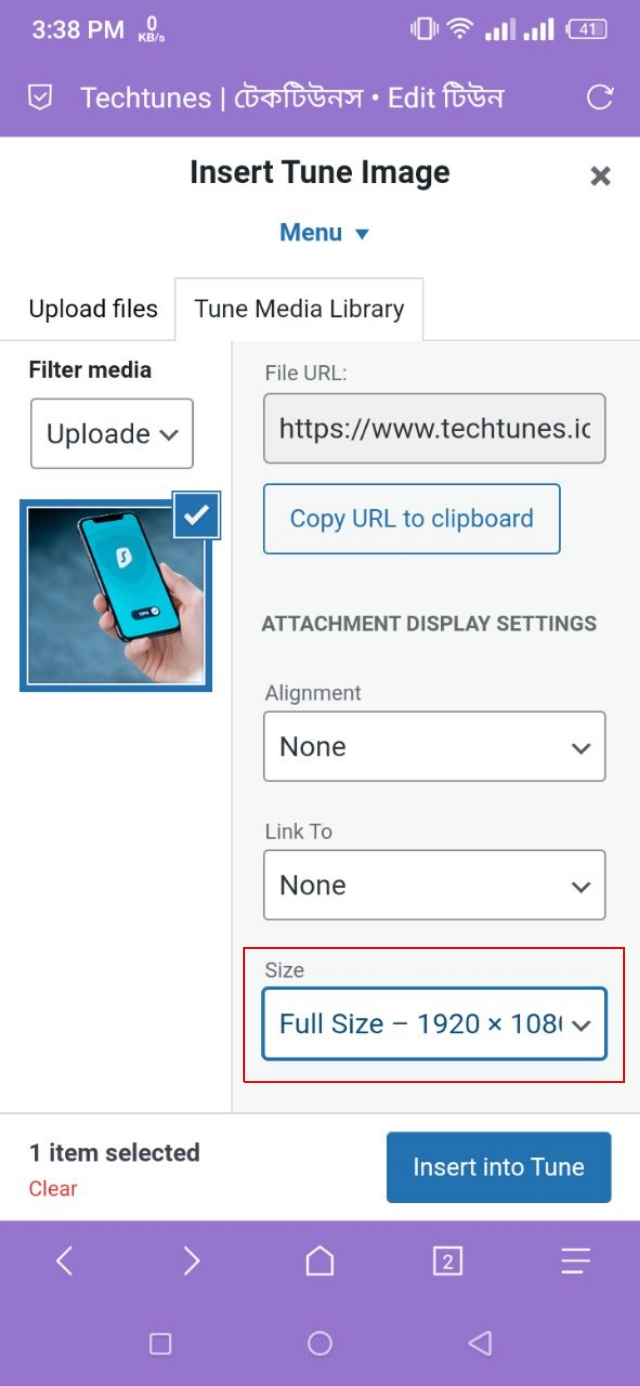 একইভাবে আপনাকে যদি এখন থেকে টিউনে কোন ছবি যুক্ত করার প্রয়োজন পড়ে, তাহলে আগের পদ্ধতিতে সেটি করতে পারবেন। তবে, টিউনে ছবি যুক্ত করার ক্ষেত্রে প্রত্যেকবার আপনাকে এভাবে ছবিটির সাইজ সিলেক্ট করে দিতে হবে না। আপনি প্রথমবার ছবি আপলোডের সময় Full Size সিলেক্ট করলেই, পরবর্তীতে সেটি ডিফল্টভাবে সেট হয়ে যাবে। তবে, টিউনে ছবি আপলোড করার সময় আপনাকে অবশ্যই ইমেজ সাইজটির দিকে একবার লক্ষ্য রাখা উচিত।