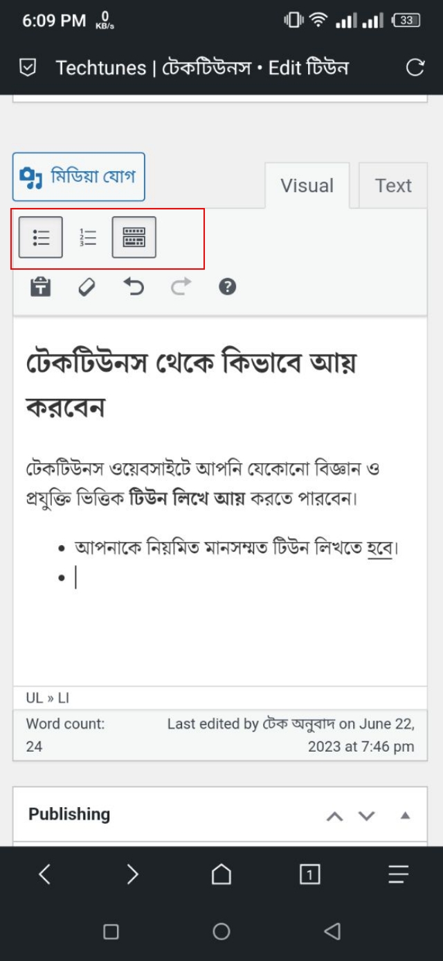 তবে, আপনি চাইলে ফরমেটিং শর্টকাট ব্যবহার করে মোবাইল থেকেও কোন টিউনের মাঝে এরকম বুলেট পয়েন্ট যুক্ত করতে পারেন। চলুন, তবে দেখে নেওয়া যাক, আপনি কীভাবে কোন একটি লেখার মাঝে ফরমেটিং শর্টকাট ব্যবহার করে Ordered List এবং Unordered List ব্যবহার করতে পারেন।