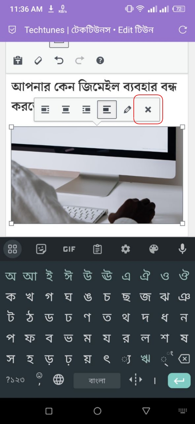 ১৬. আপনি একবার ছবিটি আপলোড করার পর যদি মনে করেন, ছবিটি পরিবর্তন করবেন, তাহলে প্রথমে ছবিটিতে ক্লিক করুন এবং তারপর ডান পাশের ”×” অপশনে ক্লিক করুন। এরপর, আপনি আবার চাইলে একই পদ্ধতিতে সেই হেডিং এর জন্য নতুন ছবি আপলোড করতে পারবেন।