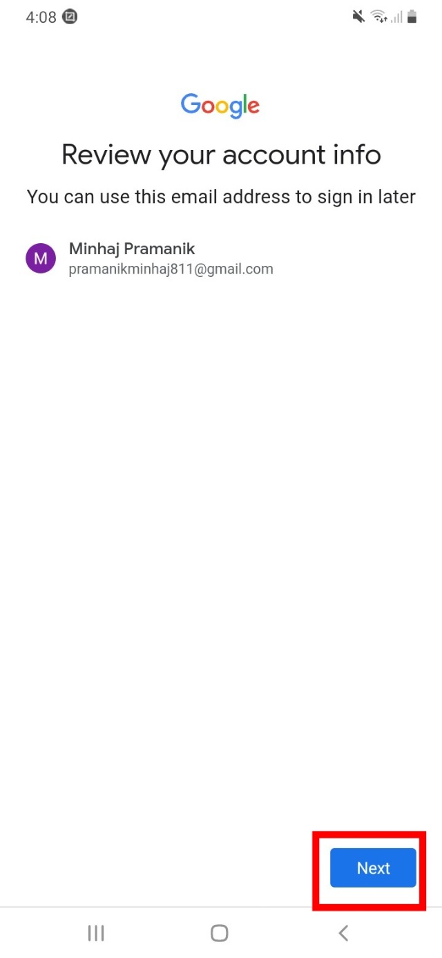 ১২. তারপর আপনার জিমেইলটি রেডি হয়ে গেছে সেটি দেখাবে। তো সেখানে জাস্ট নেক্সট বাটনে ক্লিক করে দেন।