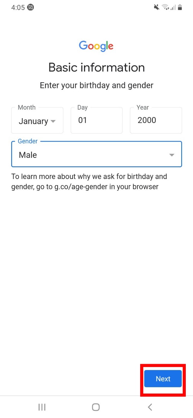 ৮. তারপর আপনার জন্ম তারিখ এবং আপনি ছেলে না কী মেয়ে সেটি সিলেক্ট করে দিয়ে আবারো নেক্সট বাটনে ক্লিক করুন।