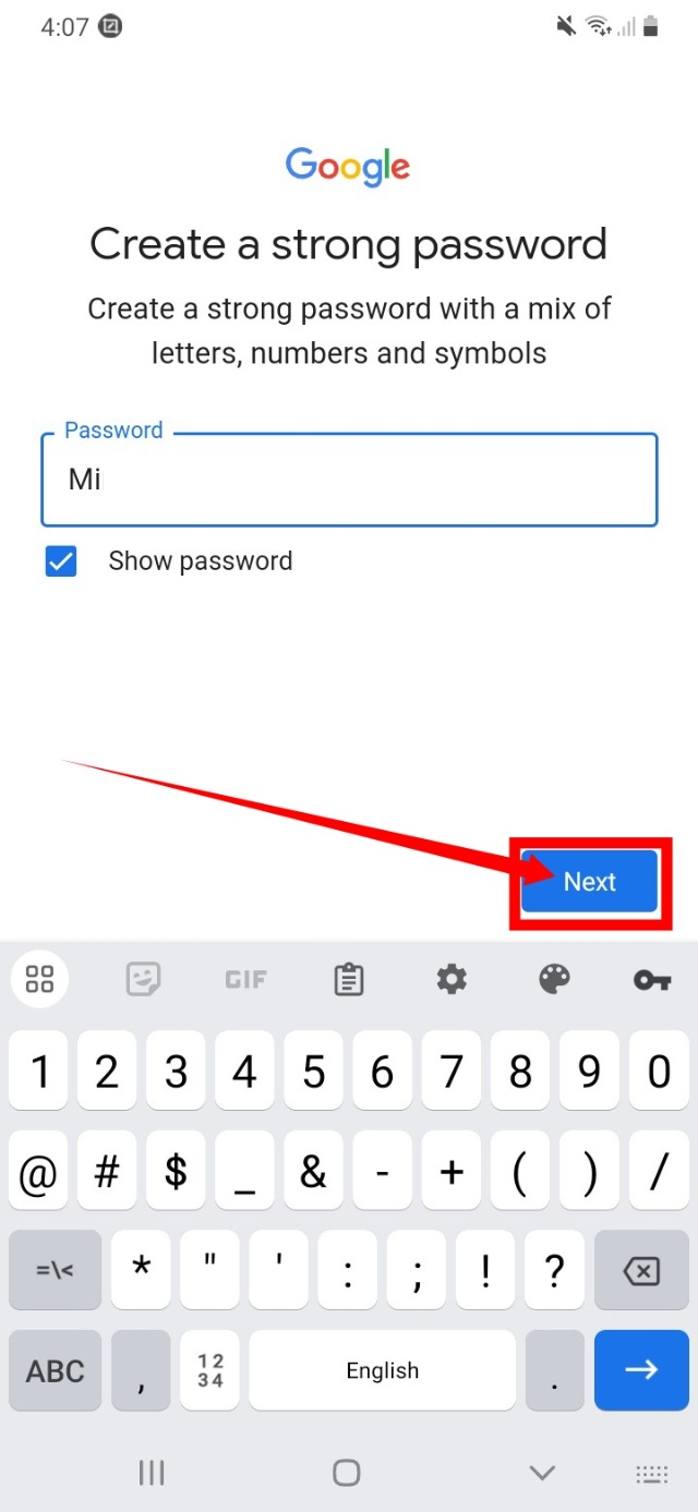 ১০. তারপর আপনার জিমেইল অ্যাকাউন্টের জন্য একটি পাসওয়ার্ড সিলেক্ট করুন এবং নেক্সট বাটনে ক্লিক করুন।