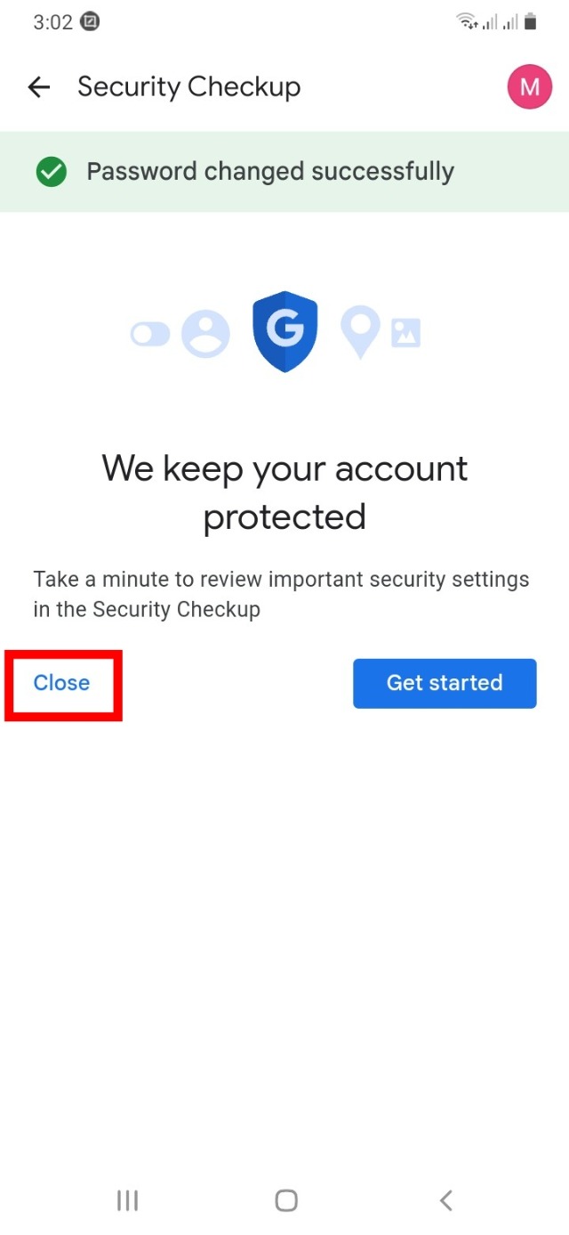 ৮. তাহলেই আপনার জিমেইলের পাসওয়ার্ডটি পরিবর্তন হয়ে যাবে। তো আপনার পাসওয়ার্ড পরিবর্তন করা হয়ে গেলে পরবর্তীতে যে স্টেপ আসবে সেখানে সবার নিচে "Close" লেখাতে ক্লিক করবেন।