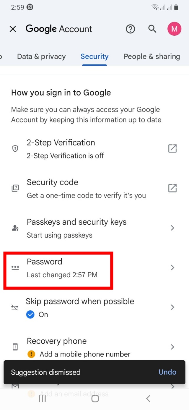 ৫. তারপরে একটু নিচে এসে "Password" অপশনে ক্লিক করুন।