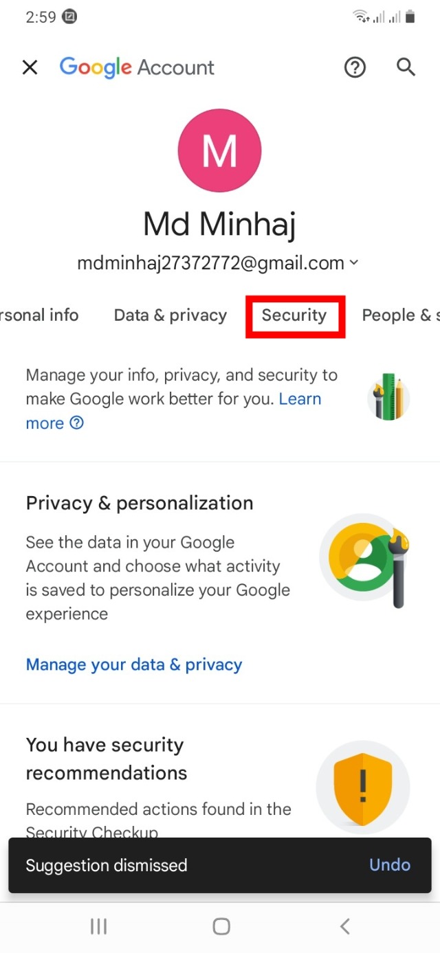 ৪. তারপরে নিচে অনেকগুলো মেনু অপশন রয়েছে সেগুলোর মধ্যে থেকে "Security" অপশনে ক্লিক করুন।