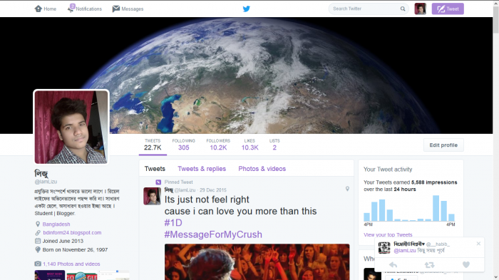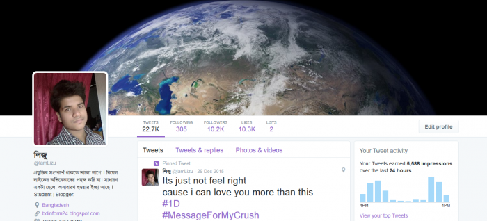 আসসালামু আলাইকুম। সবাই কেমন আছেন ? আশা করি ভাল আছেন। আবারও ফিরে এলাম একটি ভিন্ন টিউন নিয়ে। আপনারা জানেন, বর্তমান সময়ে আপনার যদি সামাজিক যোগাযোগের সাইট গুলোতে জনপ্রিয় পেইজ থাকে তাহলে আপনি সহজেই আপনার ব্যাবসা সম্পর্কে অন্যদের অবহিত করতে পারবেন। এভাবে আপনার সাইটের ভিজিটর অথবা প্রোডাক্টের ক্রেতা পেতে পারেন। বাংলাদেশ এখন আর পিছিয়ে নেই, বাংলাদেশের মানুষও এখন টুইটারে অনেক জনপ্রিয়। আগেই বলে রাখি, টিউনটি আমি অভিজ্ঞতা থেকে লিখেছি। তাই নিঃসন্দেহে আপনাদেরও টুইটারে ফলোয়ার বাড়বে। আমি যতো দূর সম্ভব সহজভাবে বুঝানোর চেষ্টা করব। তো চলুন শুরু করা যাকঃ-