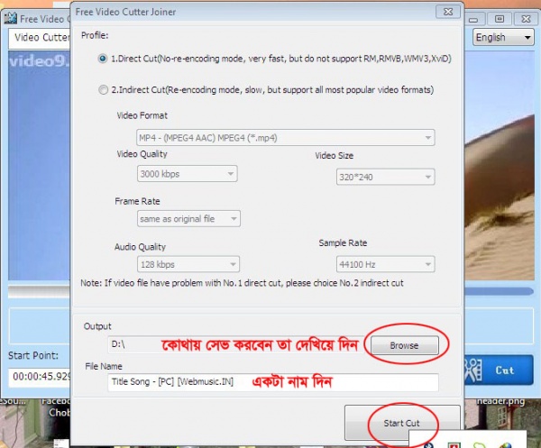 প্রথমে গানটি প্লে করুন এবার আপনি যেটুকু পর্যন্ত নিতে চান তা উপরের নিয়ম মত কাজ করে Cut এ ক্লিক করুন । তাহলে নিচের মত একটি বক্স আসবে।