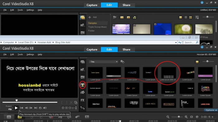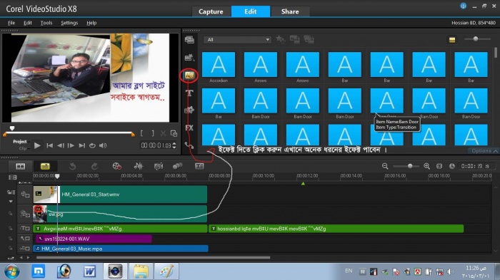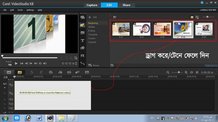 এবার নিচের দেখানো আইকনে ক্লিক করে 5টি ভিডিও এর মধ্যে থেকে আপনার পছন্দটি সিলেক্ট করে টাহমলাইনে ছেড়ে দিন.