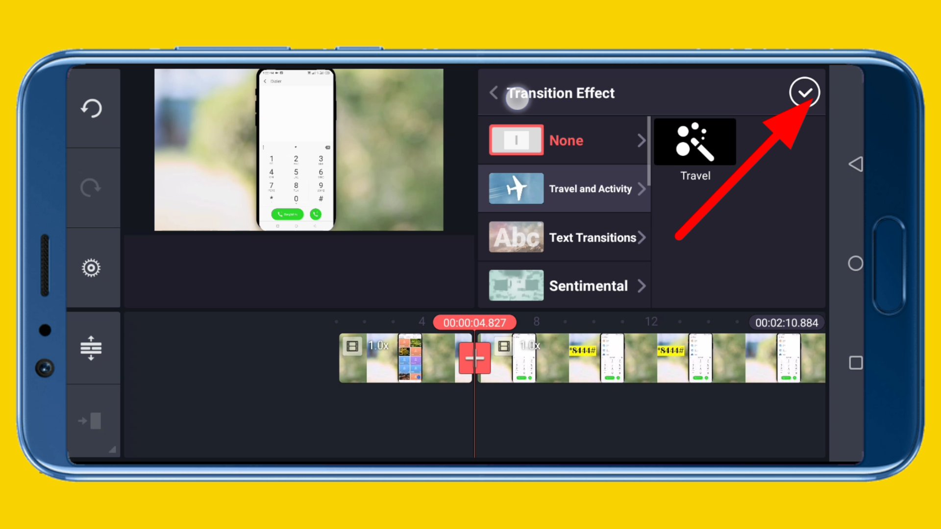 ৬. আপনি এখান থেকে যেকোন একটি ইফেক্ট সিলেক্ট করার পর, উপরের টিক চিহ্নতে ক্লিক করবেন। আর তাহলেই আপনার ভিডিওতে সেই ইফেক্ট টি যুক্ত হয়ে যাবে।