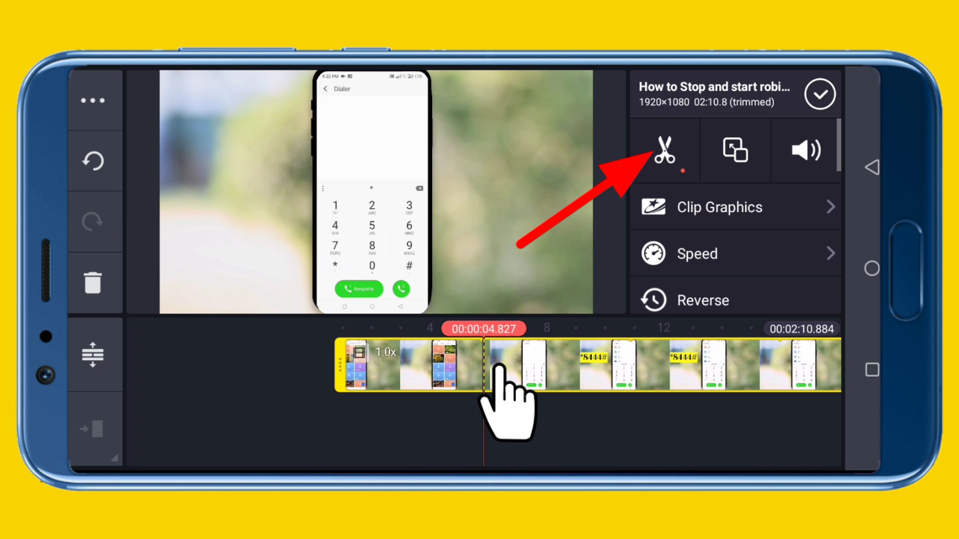 এজন্য আমি এই ভিডিও লেয়ার টির উপর ক্লিক করছি এবং তারপর উপরের ✂️ (কাঁচি) আইকনটিতে ক্লিক করবো।