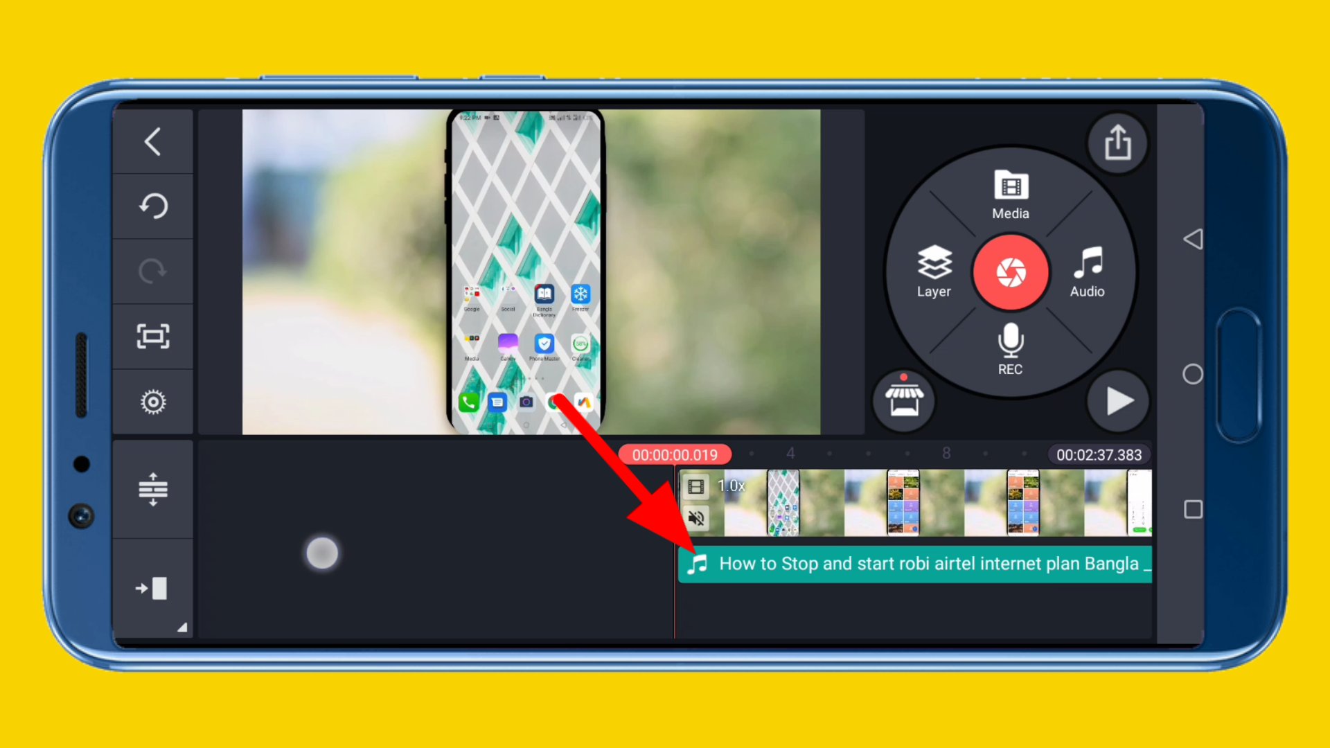 ১. এজন্য প্রথমে কাইনমাস্টার অ্যাপ টিতে এসে আপনাকে কোনো একটি ভিডিও Media option থেকে সিলেক্ট করে নিতে হবে, যে ভিডিওটি থেকে আপনি কোন একটি অডিও কে আলাদা করতে চাচ্ছেন।
