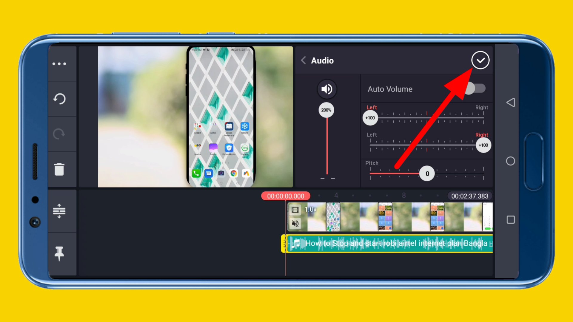 ৫. এরপর এখান থেকে অডিও সাউন্ড বাড়ানোর পর উপরের টিক চিহ্নতে ক্লিক করে এটিকে সংরক্ষণ করে দিন।
