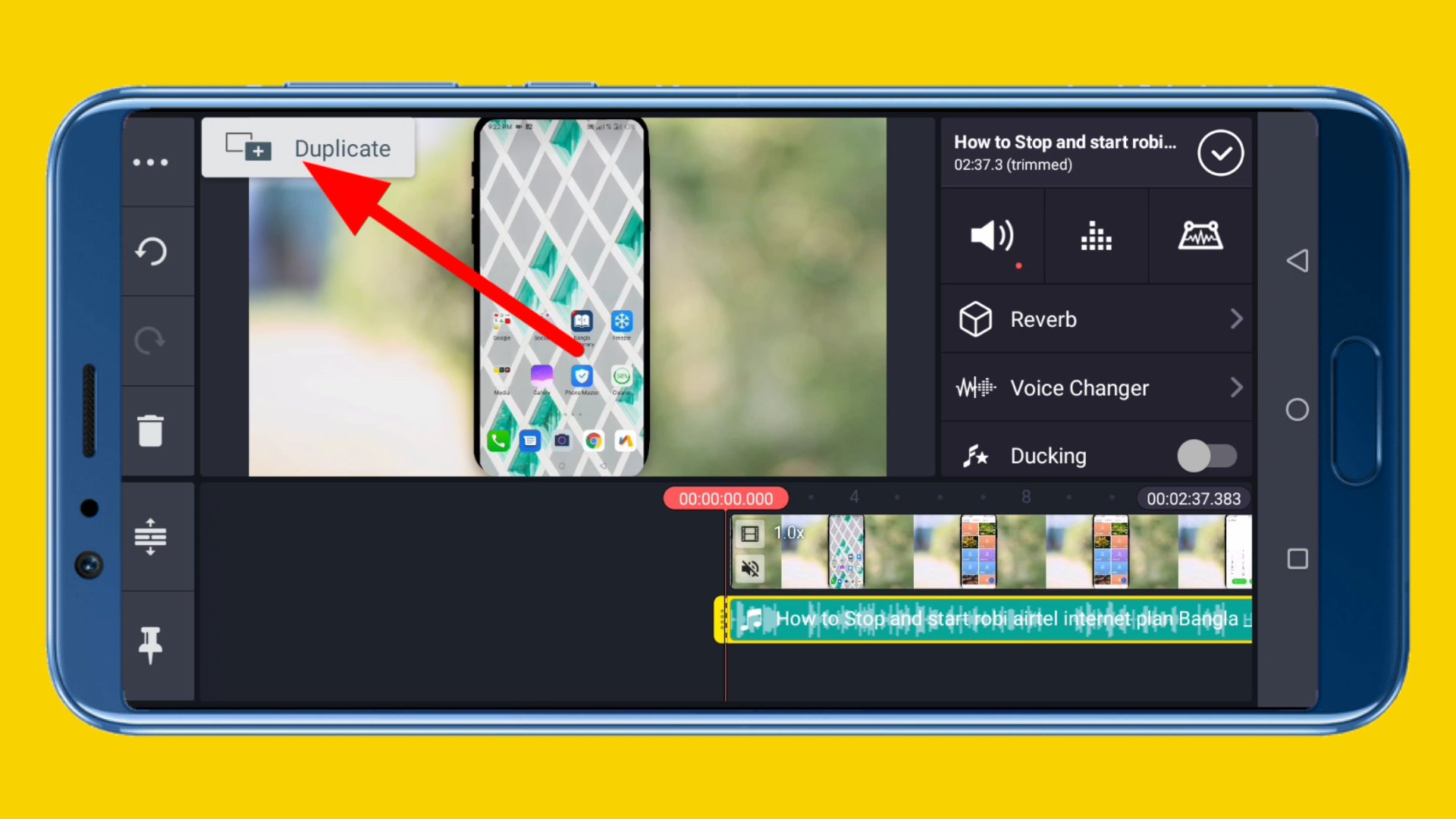 ৭. এবার আপনি এখানে দেখতে পাবেন যে, Duplicate নামের একটি অপশন। এবার আপনি এখানে ক্লিক করার মাধ্যমে সেই অডিও Layer টির একটি Duplicate তৈরি করুন।