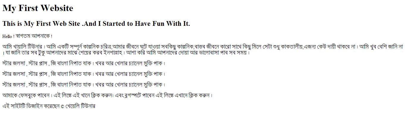 এবার my_first_site.html এ ডবল ক্লিক করুন । তো আমাদের তৈরি প্রথম ওয়েব সাইট ওপেন হল ।
