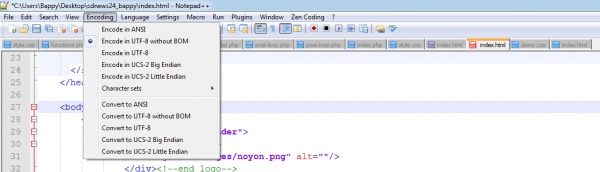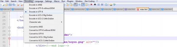 প্রথমে নোটপ্যাড++ সফটওয়্যার টি ওপেন করুন। এবার উপরের মেনু বার এ একবার চোখ রাখুন। দেখুন Encoding মেনু লেখা আছে। (নিচের ছবিটায় দেখুন)
