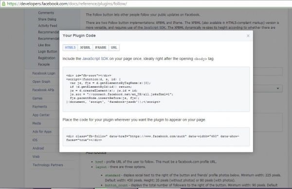 শুরুতেই আপনি আপনার ফেইজবুক আইডি লগ-ইন করুন।তারপর https://developers.facebook.com/docs/reference/plugins/follow/ এই ঠিকানায় যান।