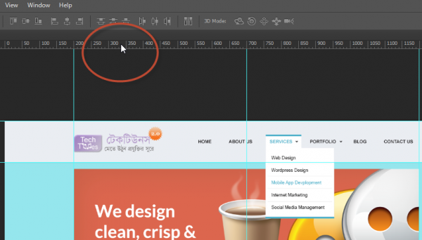 এবার বাম পাশের রুলার থেকে ড্রাগ করে ইমেজ এর ডানে এবং বামে গ্রিড দিন