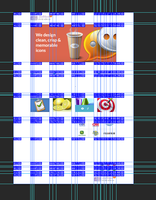 এবার আমরা পুরো পেজ টিকে গ্রিড করবো। অর্থাৎ আমাদের প্রয়োজনীয় ইমেজ গুলোকে গ্রিড দিয়ে বর্ডার দিবো।