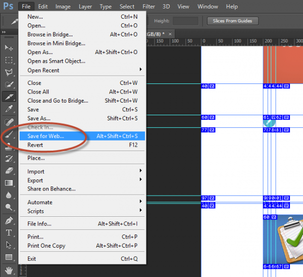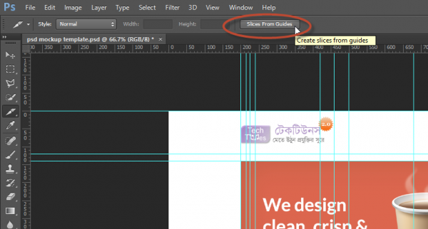 এবার উপরের Slice from guide বাটন টি ক্লিক করুন।