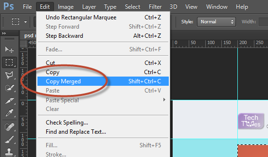 এবার কিবোর্ড এর ctrl+shift+c চাপবো। অথবা Edit মেনু থেকে Copy Merged সিলেক্ট করবো।