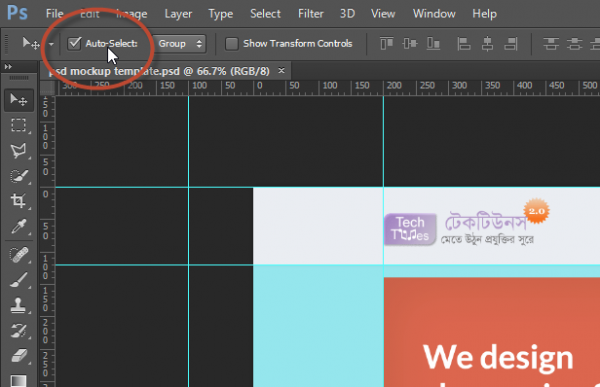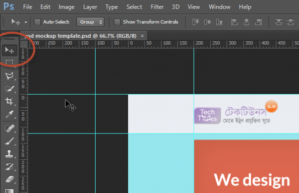 অটো সিলেক্ট অন করতে টুলস থেকে Move টুল টি সিলেক্ট করুন। শর্টকাট কি V চাপলেও এই টুল টি সিলেক্ট হয়ে যাবে।