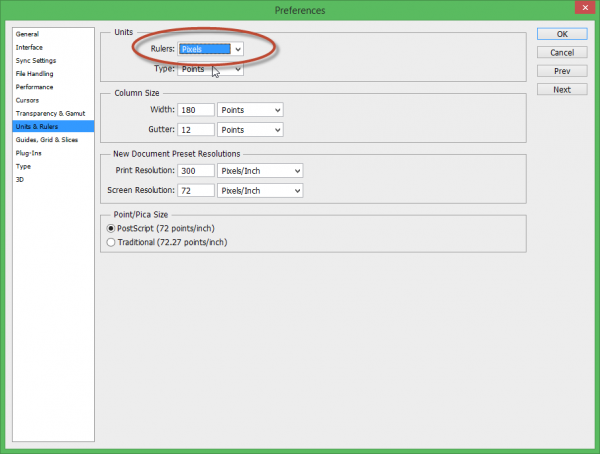 এবার নতুন যে উইন্ডো আসবে সেখান থেক Ruler অপশন টি কে Pixel করে দিন।