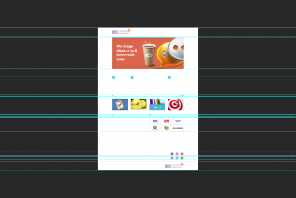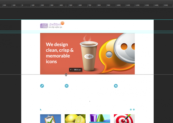 উপরের রুলার থেকে ড্রাগ করে করে প্রতিটা ইমেজ এর উপরে নিচে একদম সঠিক মাপে গ্রিড দিতে থাকুন। মাপের সুবিধার্থে আপনি পেজ টি জুম করে নিতে পারেন।