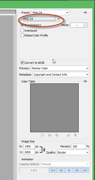 এবার ডান পাশের বার থেকে প্রেসেট PNG 24 সিলেক্ট করুন।