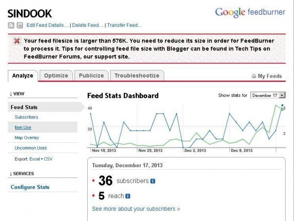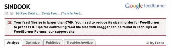 ভিজিটর বাড়ানোর জন্য আপনারা অনেকেই "Subscribe to Feed" গ্যাজেট ব্যবহার করেন। অনেক সময় দেখা যায়, পোস্টের সংখ্যা বেশি হয়ে গেলে অথবা পোস্ট কন্টেন্ট ভারী হয়ে গেলে কিংবা কাস্টম ডোমেইনে ব্লগস্পট সাইট ট্রান্সফার করার পর আপনার ফিডবার্ণার অ্যাকাউন্টে নিচের Error টি দেখাচ্ছে