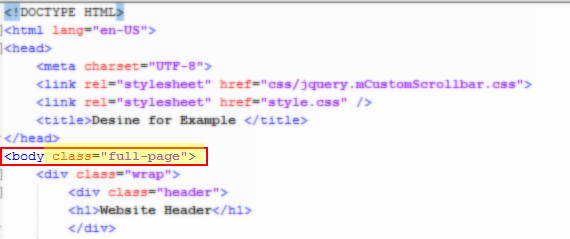 এখন নিচের ছবির মত <body> tag এ class="full-page" যুক্ত করুন।
