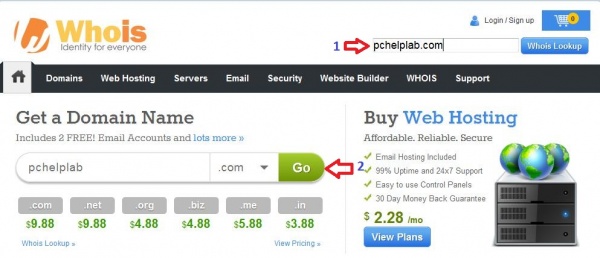 এটি একটি জনপ্রিয় টুলস। এখানে আপনি যে কোন ডোমেইন চেক করতে পারবেন। তাছাড়া এখান হতে ডোমেইন ও হোস্টিং গ্রহন করতে পারবেন। যেগুলো মাস্টার কার্ড ও পেপাল কার্ডের মাধ্যমে পেমেন্ট দেওয়া যায়। যে ডোমেইনটি গ্রহন করতে যাচ্ছেন সেটি পূর্বে রেজিস্ট্রি হয়েছে কিনা কিংবা ফাকা আছে তা দেখতে Get a domain এর ঘরে Domain লিখে Go তে ক্লিক করুন।