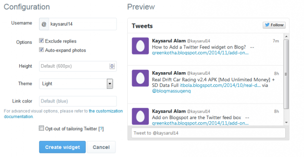 আসসালামুআলাইকুম,কেমন আছেন সবাই? আজ টুইটার ফিড উইজেট নিয়ে লিখছি । টুইটার একটি জনপ্রিয় সোসিয়াল মিডিয়া সাইট । অন্যান্য জনপ্রিয় সোসিয়াল নেটওয়ার্ক এর মত টুইটারও, ব্লগ এবং ওয়েবসাইট এ গুরুত্বপূর্ণ ভূমিকা রাখে। আজ আমি এই পোস্ট এ আপনাদের জানাব কিভাবে ব্লগ এ টুইটার ফীড বক্স যোগ করবেন । টুইটার ফিড উইজেট এর জন্য টুইটার একাউন্ট না থাকলে খুলে নিন তারপর টুইটার একাউন্ট এ গিয়ে সেটিংস এ জান নিচে উইজেট লেখাতে ক্লিক করেন ।