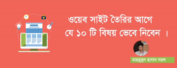 আমরা কোন একটা প্রোজেক্ট শুরু করার আগে সেটার প্লান করি, আর সেই প্লান অনুযায়ী সেটা বাস্তবায়ন করার চেষ্টা করি । মনে করেন আপনি যদি একটা বাড়ি তৈরি করেন সেটার জন্য সু-নিদিষ্ট একটা প্লান তৈরি করেন আর সেই রকম ভাবে একটা ওয়েব সাইট তৈরির আগেও একটা প্লান তৈরি করতে হয় । একটা ওয়েব সাইট এর অনেক কিছু ভাবার থাকে আর সেই সব কিছু ভেবেই ওয়েব সাইটা তৈরি করতে হয় । মনে করেন আপনি সু-নিদিষ্ট একটা প্লান ছাড়া একটা ওয়েব সাইট তৈরি করলেন আর তারপর সেটার পিছনে ইনভেস্ট করলেন কিন্তু সফল হতে পারলেন না । এক্ষেত্রে আপনার সফল না হাওয়ার এক মাত্র কারন হচ্ছে আপনার সু- নির্দিষ্ট প্লান না থাকা । আর সেই প্লান কিভাবে করবেন সেই সম্পর্কিত কিছু ধারনা আজ আমি আপনাদের কে দিব । একটা কমন প্রশ্ন যেটা আপনি নিজেকে নিজে করবেন । সেটা হলঃ ওয়েব সাইট টি আমি কেন করব ? আর এই প্রশ্নের উত্তর পাওয়ার পর আপনাকে নিচের ১০ টি বিষয় সম্পর্কে ভাবতে হবে ।