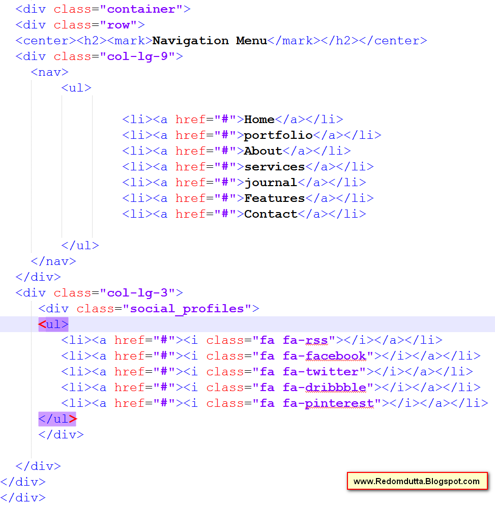 Navigation মেনুটি তৈরি করতে নিচের মত এইচটিএমএল Markup করে ফেলুন।