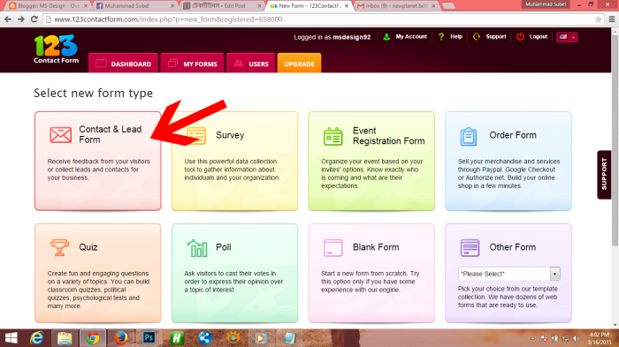 Sign up করার পর Select new form type একটি পেইজ আসবে। সেখান থেকে আপনি Contact & Lead Form সিলেক্ট করুন।