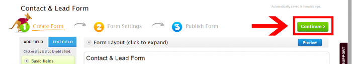 মনে রাখবেন, এখানে আপনি যে যে ফিল্ড যোগ করবেন একজন ব্যবহারকারীকে সেগুলো ফিল্ড পূরন করতে হবে। আর সে তথ্য গুলো আপনার মেইলে আসবে। এবার আপনার ইচ্ছানুযায়ি ফিল্ড এড করা হয়ে গেলে একদম উপরে Continue বাটনে ক্লিক করুন।
