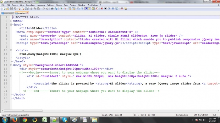 এবার আপনি স্লাইডারকে যেখানে publish করেছিলেন, সেখানে যান দেখতে পাবেন ৩ টি জিনিস আসছে। এখানে দেখেন দুটো ফোল্ডার আর একটি index.html আছে। আপনি ফোল্ডার দুটোকে কপি করে আপনার তৈরি কৃত মূল ফোল্ডারে পেষ্ট করুন, যেখানে আপনার সব জিনিস রাখবেন। আর যে index.html বাকি ছিল তা কে Notepad++ বা Notepad বা Dreamweaver সফটওয়্যারটিতে Open করুন।