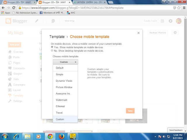 ব্লগস্পটের নিজস্ব মোবাইল টেমপ্লেটগুলোও সিলেক্ট করতে পারেন।