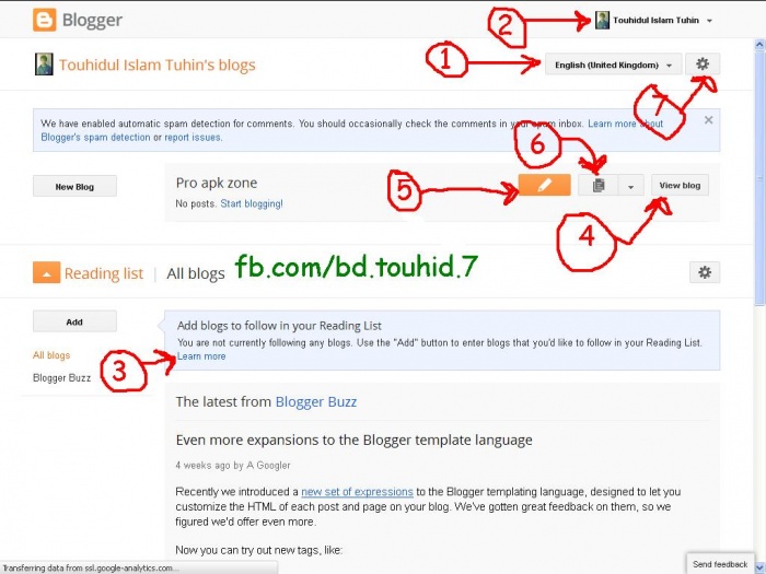 আমার আজকের পর্ব হল Dashboard পরিচিতি। প্রথমে এখানে গিয়ে আপনার ইমেল এবং পাসওয়ার্ড দিয়ে লগইন করলে নিচের মত একটি পেজ open হবে। চিত্রটি লক্ষ্য করুন। এবং পয়েন্টের প্রতি খেয়াল রাখুন। তাহলে বুঝতে সুবিধা হবে।