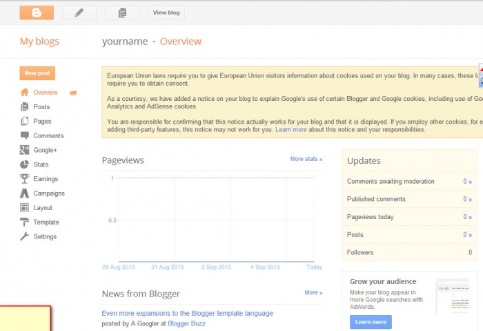 এখন অই একাউন্ট থেকে লগ ইন করে ব্লগার একাউন্ট এ প্রবেশ করুন। চিত্রের মত যায়গায় গিয়ে ইংলিশ english সিলেক্ট করুন